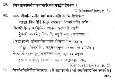 It is now time enough for us to consider some general points of interest. The Tilakamanjari tells us that the Chitrasala was generally highly perfumed to spread an aroma about the chamber and to add to the joyous atmosphere.39 From the Karpuramanjari we know that the picture galleries (those of the palace) were opened in the evenings.40 The commentary gives us that Abhisarikas and the hetaira–this is suggested by the word adi in Abhisarikadi–gathered there at dusk, the latter perhaps to exhibit the movement of their agile limbs in dance before the king.41 From a verse in the Natachampu of Trivikrama we gather that inhabitants of cities with an aesthetic taste resorted to Chitrasalas in the company of their women in the Sarat season.42 From this it appears that autumn was part of the year chosen for spending time gaily in witnessing pictures in art galleries in India.