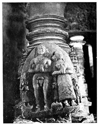In a niche of the famous Kesava temple at Belur49 stand two figures whom tradition identifies as Vishnu- vardhana,50 the great Hoysala king, (1104-1141 A. D.) and his queen Santale [Fig. I5]. This Vishnuvardhana is famous in south Indian history as the great king who was converted to Vaishnivism by Ramanuja and as the builder of magnificent temples. The figures are carefully sculptured and were doubtless good likenesses.