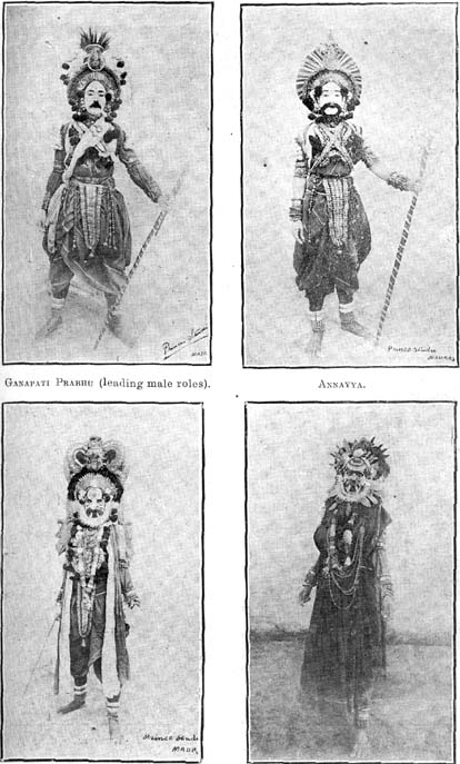 The Yaksha Gana belongs to South Canara in the Kannada area, where other forms of Natya like Nautch must have flourished in other places. For it is the Karnataka country that has named our South Indian music and dance as ‘Karnatic.’ In South Canara, the Yaksha Gana is one of the two most widespread popular dramatic entertainments, the other being the puppet-play, called as in Tamil by the name ‘Bommalattam.’ The vernacular name of the Yaksha Gana is ‘Bayal Attam,’ i.e., open-air play, a name which corresponds to the Tamil ‘Terukkoottu’ and the Telugu ‘Veethinataka’ both of which mean street-play. The Yaksha Gana troupes are attached to particular shrines, even as at the villages of Oottukkadu etc., in Tanjore district, where the ‘Bhagavata’ troupes play only at the temples.5 As at the Andhra Kuchipudi and at the above-said Tamil villages, the actors of Yaksha Gana in South Canara are also called ‘Bhagavatars’ and a set and a performance by them is called a ‘Mela.’ Unlike the Tamil ‘Bhagavatars’ referred to, the Yaksha Gana players of South Canara travel from place to place and people even pray to their gods in times of distress that they will order an Yaksha Gana performance as offering. Last year two sets of South Canara Yaksha Gana players, the ‘South Canara Yaksha Gana Dramatic Company’ and the ‘Sri Perudur Anantapadmanabha Swami Dasavataram Company,’ visited Madras and this account of mine of Yaksha Gana is mainly based on the performances they gave in Madras.