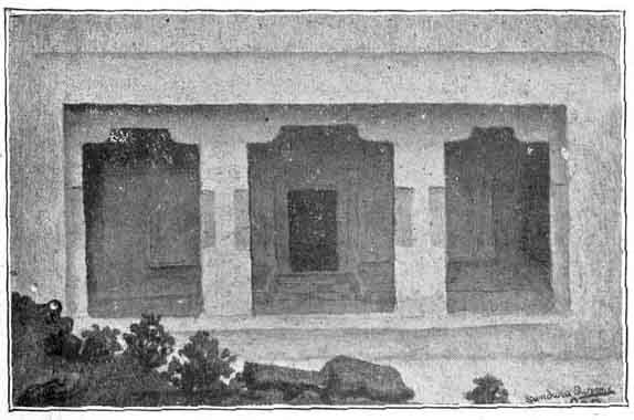 "These paintings are perhaps, as old as the shrine and are a fairly good state of preservation, and need being copied fully", wrote Mr. Gopinath Rao to his friend and collaborator, Prof. G. Jouveau Dubreuil of Pondicherry, who, on his part, went over, to the cave early next year and saw that from an artistic point of view, the remains were similar to those of Ajanta paintings and that they were very remarkable. He forthwith drew the attention of the public, by means of a leaflet in which a rough tracing of the outline of one of the dancing figures only was given, as the Professor's photographs of the paintings, though taken with care, were unable to give satisfactory results.