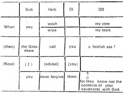 of the sufferer; ‘I’; and ‘onlookers’ calling ‘you’ a foolish ass ‘for serving