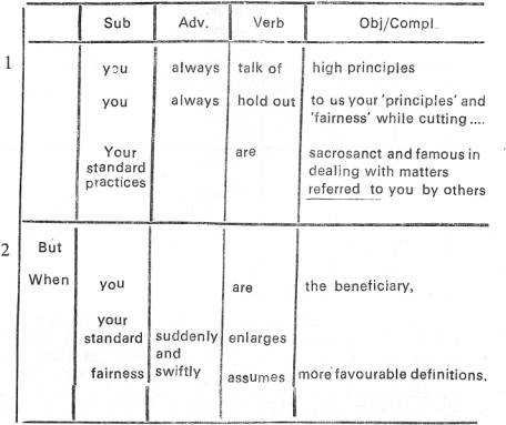 eleven lines, while the ‘private practice’ in one sentence of four lines. The