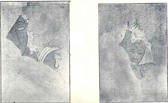 And now, Prof; Dubreuil of Pondicherry, to whom this time the credit of the real discovery is undoubtedly due, has literally exposed and brought to our notice the existence of real old and equally good frescoes at Kanchipuram. With my Intimacy with every hair-breadth of the Sittannavasal frescoes, I flew to the scene of this new discovery recently, to have darsanam of the frescoes. The thick coats of plaster, evidently due to the misguided restoration of the Archeological Department, which the enthusiastic French historian of the Pallavas had removed in order to render visible the underlying frescoes, were lying about in the very place in which they had been thrown out by the Professor. Though it comes under the Public Monuments Protection Act, the Kailasanatha temple is a neglected one, where moth and rust have been allowed to corrupt. The paintings exposed are sure to suffer a good deal if neglected even for a short time; because unlike at Sittannavasal, they are in the vicinity of one of the chief centres of South Indian pilgrimage. These pictures are marvellous and are executed in the very identical and definite style in which the Sittannavasal frescoes are executed. The technical similarity is such that we may safely infer and presume an oneness of hand in both the places. Much more lies buried under the heartless coats of white washing which has to be removed very very carefully to render what is hidden visible. The temptation of further discovery, aping the sincere and honest efforts of the French Professor, may prove really dangerous as well as disastrous and should be forthwith guarded against by those responsible. What has been already exposed is very little; only five heads of which only one is whole, the right half of a masculine torso, a fore-arm and three fingers of a hand. A panel with two chombus or vases may also be seen. Besides there are many undecipherable portions belonging to drapery or figure here and there. In other places you find traces of crude brush lines evidently of far later date, out which nothing could be made.